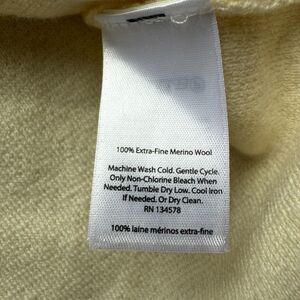 This extra-fine merino wool sweater is in good pre-owned condition. It has a small stain on the bottom in the back that I have not attempted to clean.