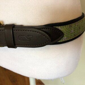 VINEYARD VINES Marlin Print Canvas Club Leather Trim Belt 32