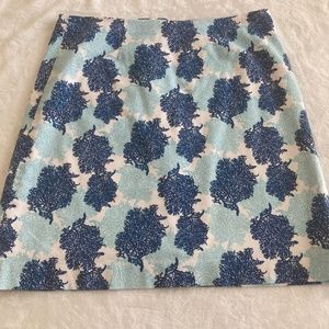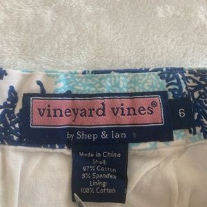 Vineyard Vines sea sponge print, cotton lined skirt in size 6. Excellent condition. Skirt zips up the back and is 97% cotton and 3% spandex. Lining 100% cotton. Measures 14" across the waist and 18" length from waist to hemline. There are no stains , rips, defects.