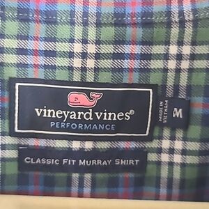 VINEYARD VINES Performance Classic Fit Murray Shirt, size Medium. Green, blue, red, white stripes. Close-up pics best represent true colors. Soft material. Gently pre-owned.
