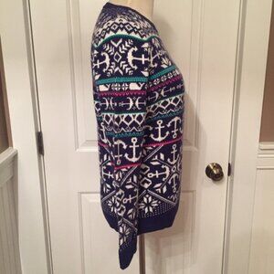 VINEYARD VINES WOMEN’S SWEATER CREWNECK LONG SLEEVE BLUE WHITE ANCHOR WHALE PREPPY PRINT SIZE MEDIUM