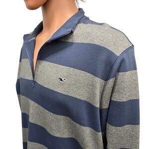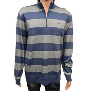 VINEYARD VINES Saltwater 1/4 Quarter Zip Sweater Men L Blue Gray Striped Cotton