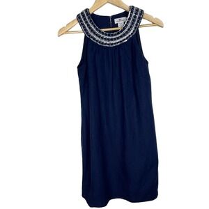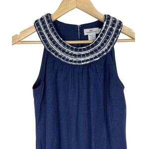 VINEYARD VINES Size 2 Navy SEQUIN EMBELLISHED Linen Blend SHIFT Dress