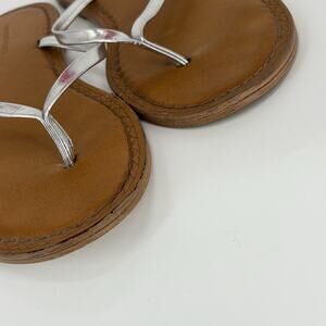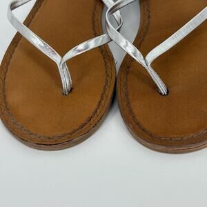 VINEYARD VINES Skinny Strap Flip Flops Womens 8 Silver Faux Leather 2Z001059-040