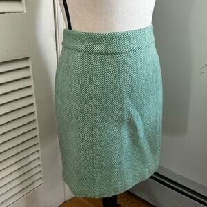VINEYARD VINES Womens Skirt Midi Herringbone Tweed 100% Wool Green Preppy Office
