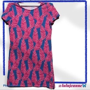 VINEYARD VINES Pink and blue palm leaf print dress