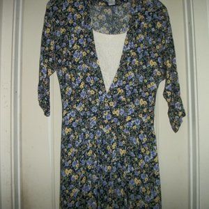 THIS IS SUCH A PRETTY DRESS BY MAGGIE LAWERENCE. IT WAS PROBABLY MADE IN THE 90S. IT WAS MADE IN SRI LANKA. IT IS 100 RAYON. EXCEPT THE LACE. THERE ARE SHOULDER PADS. THERE ARE PLEATS DOWN THE FRONT STITCHED. FROM UNDERARM TO UNDERARM ALL THE WAY AROUND THE PIECE IS 42 INCHES. ALL THE WAY AROUND THE WAIST IS 31 INCHES. THERE IS A DROP WAIST. WITH SOME WEAR YET PLENTY TO SHARE WITH YOU LUCKY BUYER. 1RST GROUP. #1172 ENJOY THE GARDEN. THANKS