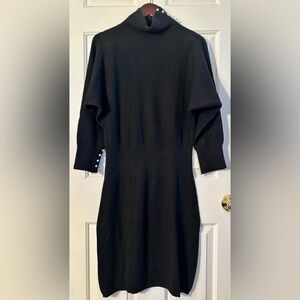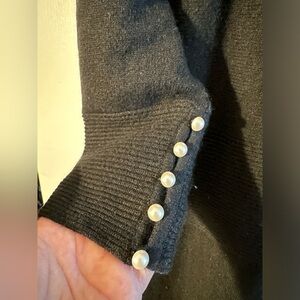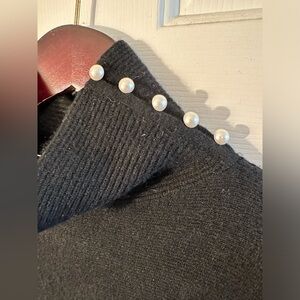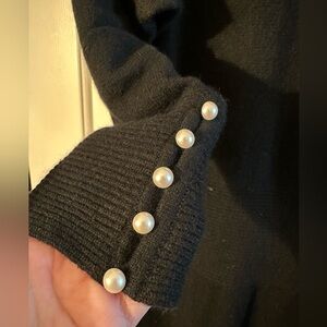 VINTAGE 100% 2 Ply Cashmere M Black Mock Turtleneck Pearl Button Midi 3/4 Sleeve