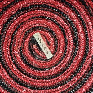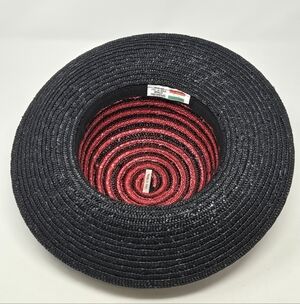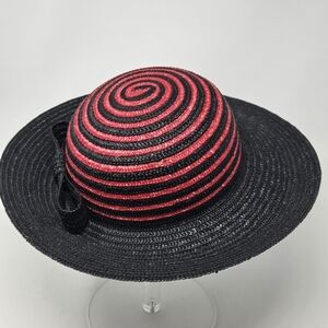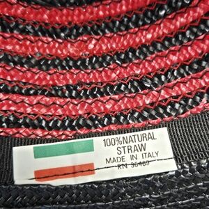 VINTAGE 100% NATURAL STRAW WOVEN HAT BLACK & RED SWIRL ITALY WOMEN OS WHIMSIGOTH