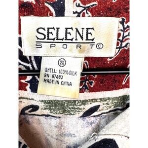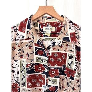 VINTAGE 100% Silk Blouse Size 2X Floral Corrage Hawaiian Summer Beach Vacation