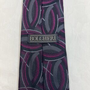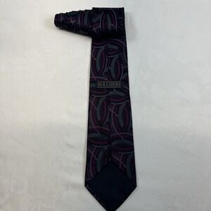 VINTAGE 100% Silk VILLA BOLGHERI ITALIA TIE Magenta, Black, & Gray Pattern 57"