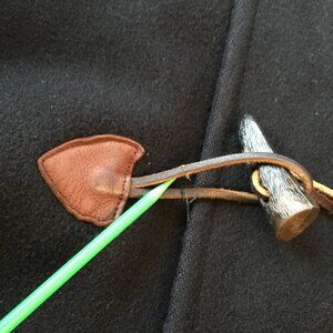 The leather cuffs show wear and the fabric lining by the cuffs is ripped, photos 6-7.