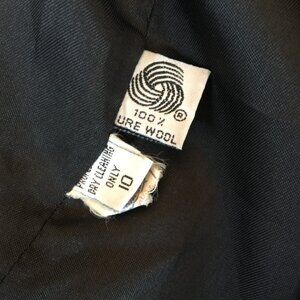 VINTAGE BLACK 100% PURE WOOL BROWN LEATHER TRIM HOODED DUFFLE COAT UNION MADE IN USA WOMENS SIZE 10 50"x37"