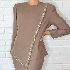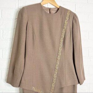 VINTAGE 100% wool taupe brown tailored wool long sleeve dress 8