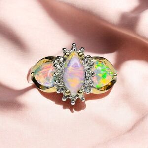 VINTAGE- 10k Gold -Natural Marquise Opal & Halo Diamond Ring -Sz 7- 3.5g