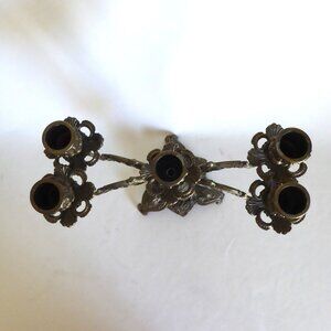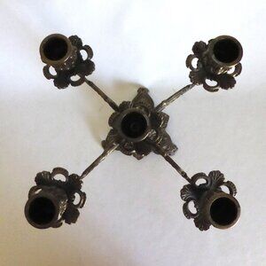 VINTAGE 11.5” GOTHIC STYLE BRASS CANDELABRA 5 ARM CANDLE HOLDER MOVING ARMS SET