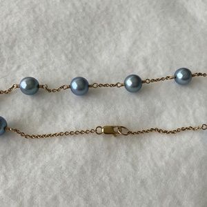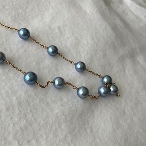 VINTAGE 14K Gold Blue Pearl Tin Cup Necklace