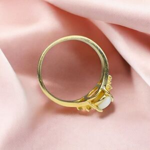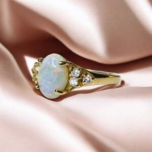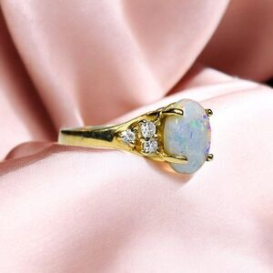 VINTAGE- 14K Gold -Natural Australian White Opal & Diamond Ring -Size 5 -1.9g