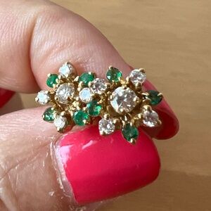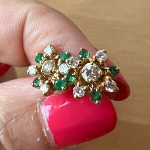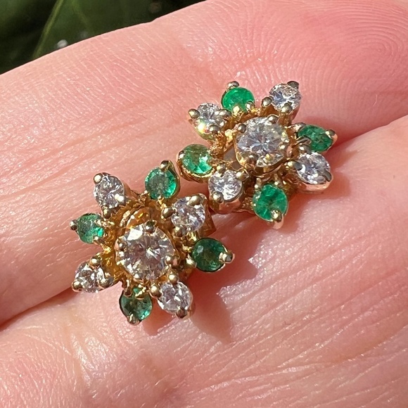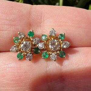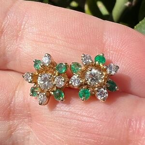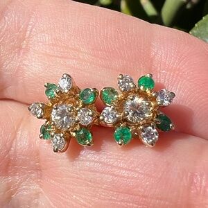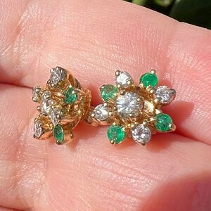 VINTAGE 14K YELLOW GOLD DIAMONDS & EMERALDS STUDS & EARRINGS JACKETS VERSATILE