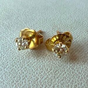 THE EARRINGS BUTTERFLY LOCKS ARE STAMPED, BUT ALSO BOTH THE EARRINGS “BODY”, AND STUDS WERE TESTED TO CONFIRM 14K GOLD.