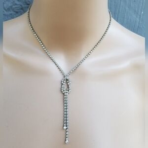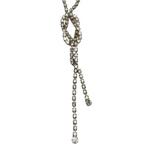 VINTAGE 18K WHITE GOLDPLATE & GLASS RHINESTONE DAINTY KNOT DESIGN NECKLACE