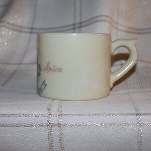 CONDITION= GREAT VINTAGE USEABLE CONDITION--THIS CUP HAS SOME MARBLE LIZING OF WHITE THROUGH THE CREAM COLORED CUP. THIS IS VERY UNUSUAL. I HAVE NEVER SEEN THAT ON A CUP LIKE THIS BEFORE. TO ME I DO NOT CALL THIS DAMAGE. EVEDENTLY HAPPENED WHILE MAKING.