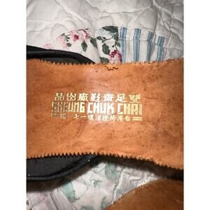 VINTAGE 1930's SHEUNG CHUK CHAI FLORAL EMBROIDERED SILK MULES/SLIDES 2" HEEL