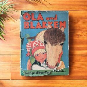 Add a beautiful vintage children’s book to your collection! This is the 1936 edition of Ola and Blakken and Line, Sine, Trine by Ingri & Edgar Parin d’Aulaire, known for their distinctive lithographic illustrations and charming storytelling.