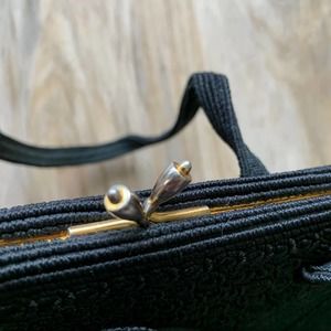VINTAGE 1940s Black Corde Handbag by Gold Seal - Retro Handbag