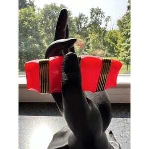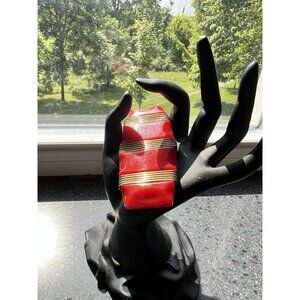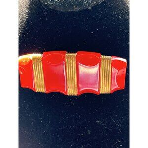 VINTAGE 1940s CHERRY RED BAKELITE Brooch PIN CENTER WITH BRASS Perfect