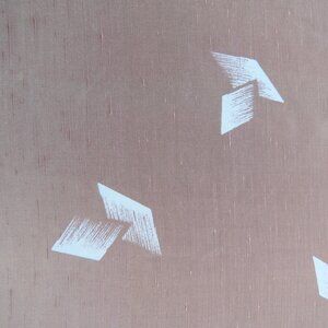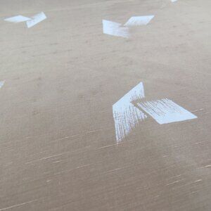 Caramel tan with cream art deco diamond shapes fabric. I believe it is rayon crepe, but no burn test has been conducted. Vintage circa 1940s.