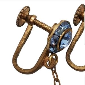 VINTAGE 1940s GOLDTONED & BLUE AUSTRIAN CRYSTAL SCREW BACK DROP STYLE EARRINGS
