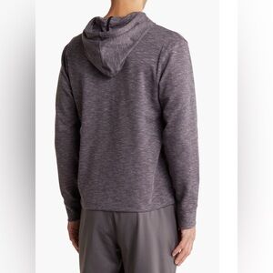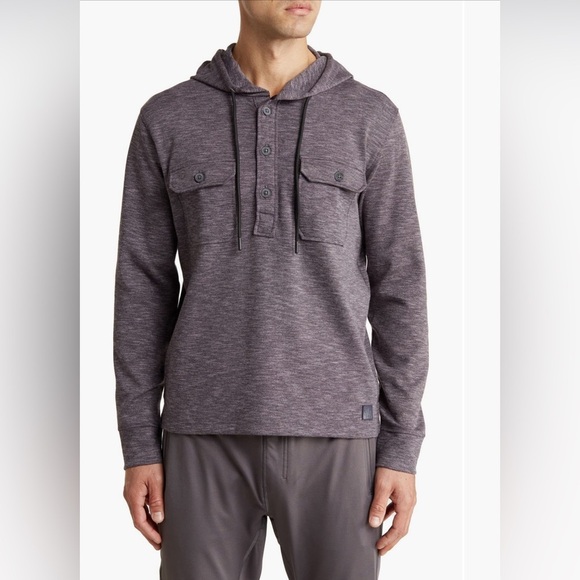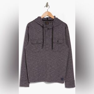 A slub double knit construction enhances the cozy appeal of this half-button hoodie pullover that'll keep you warm when the weather is chilly.