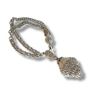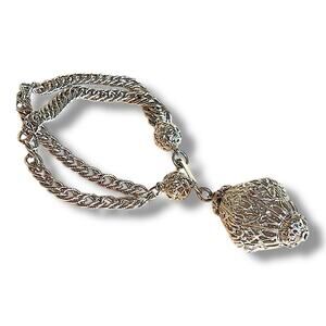 VINTAGE 1950s Silver tone Filigree One Charm Bracelet JUDY LEE Label NEVER WORN