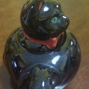 VINTAGE 1950s black cat w red bowtie & green eyes teapot Shafford - made in Japan 6" tall box 18#3