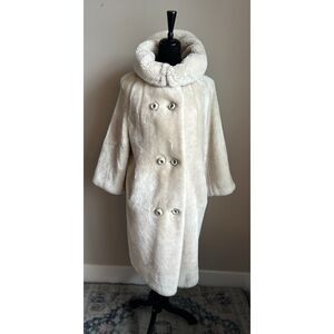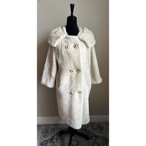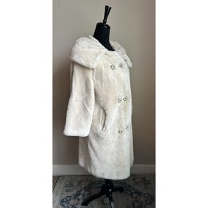 VINTAGE 1950's/1960's Cream Faux Fur Fully Lined Convertible Collar Coat Size M