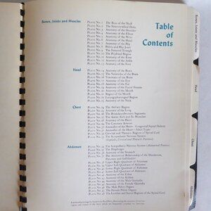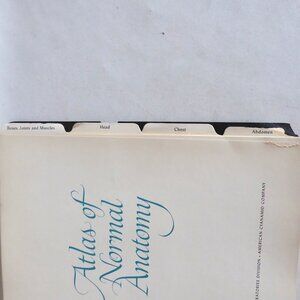 Vintage, 1956, “Atlas of Normal Anatomy” illustrated book by Lederle Laboratories. The book is soft cover and spiral bound. It has 4 tabbed sections: “Bones, Joints, and Muscles”, “Head”, “Chest” and “Abdomen”. IMPORTANT: Two corners of the cover have torn off. (See photos for details) I am the original owner. It has been in climate controlled storage for decades. Comes from a pet and smoke free home.