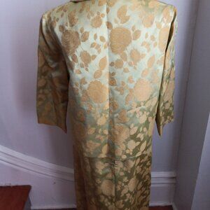 VINTAGE 1960'S GREEN GOLD BROCADE DRESS JACKET SET