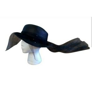 VINTAGE 1960'S MISS BIERNER CREAM WOOL HAT WITH FACE NET AND CHIN STRAP