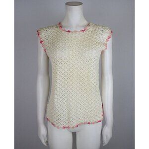 VINTAGE 1960s 1970s WOMEN'S CREAM CROCHET DOILIES STYLE PULLOVER SWEATER - S