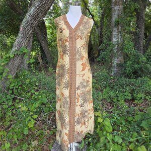 VINTAGE 1960s ALFRED SHAHEEN 2 PIECE JACKET MAXI GOLD HAWAIIAN DRESS Size 10