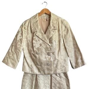 VINTAGE 1960s Deadstock 2 Pc Ivory Ivy Brocade Cocktail Dress Size Modern 4