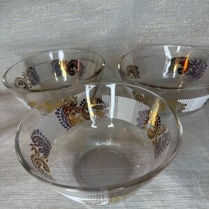 VINTAGE 1960’s Elegant Gold Paisley Capri Patterned Glass Bowls (3 in the set)