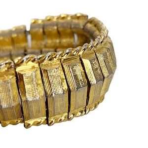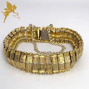 VINTAGE 1960s Goldtone Accordion Bracelet With Safety Chain