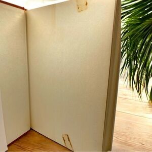 • There are discoloration marks and remnants of tape residue on the inside cover pages (see pictures).