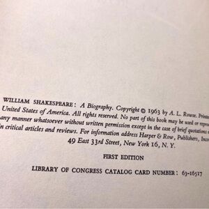 Add a piece of literary history to your collection with this vintage 1963 first edition of William Shakespeare: A Biography by A. L. Rowse. Published by Harper & Row, this comprehensive biography offers fascinating insights into the life and works of the world’s greatest playwright.