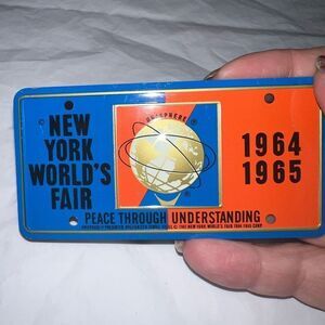 VINTAGE 1964/65 NEW YORK WORLDS FAIR EMBOSSED BIKE LICENSE PLATE. PRISTINE CONDI
