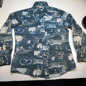 VINTAGE 1970 ALICE IN WONDERLAND KENNINGTON DISNEY POLYESTER DISCO SHIRT Sz L
