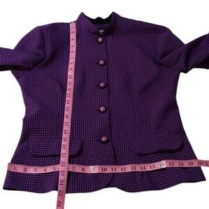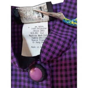 VINTAGE 1970s 2 Piece Suit Long Midi Skirt Jacket Set Large Purple Black Gingham