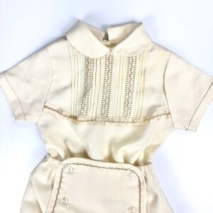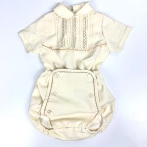 VINTAGE 1970s Baby Sz 6 Months Ivory Cottage Button Classic Bobby Suit One Piece